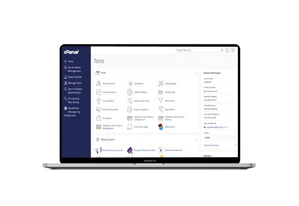 Manage files with File Manager, and control databases with phpMyAdmin , all from one place.